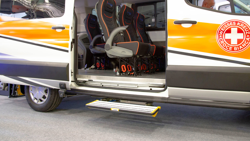 Total Ausfahren von Trittstufe durch minimalen Hub der Fahrzeugtür.