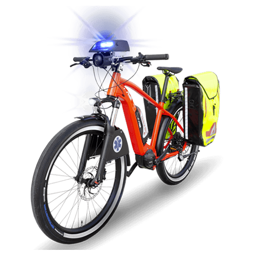 Bicicletta elettrica a pedalata assistita equipaggiata per il soccorso.