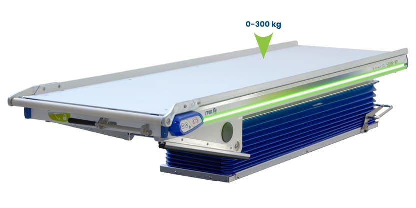 - Sospensione idropneumatica automatica in base al peso del paziente, a partire da 0 kg
