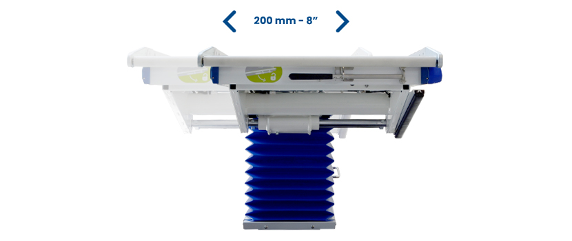Si distingue per il suo utilizzo semplice ed efficace tramite la pulsantiera, che permette regolazioni facili e precise dell’inclinazione e del sollevamento. Il sistema di sicurezza consente lo scaricamento della barella anche senza alimentazione elettrica
